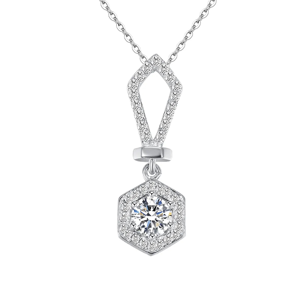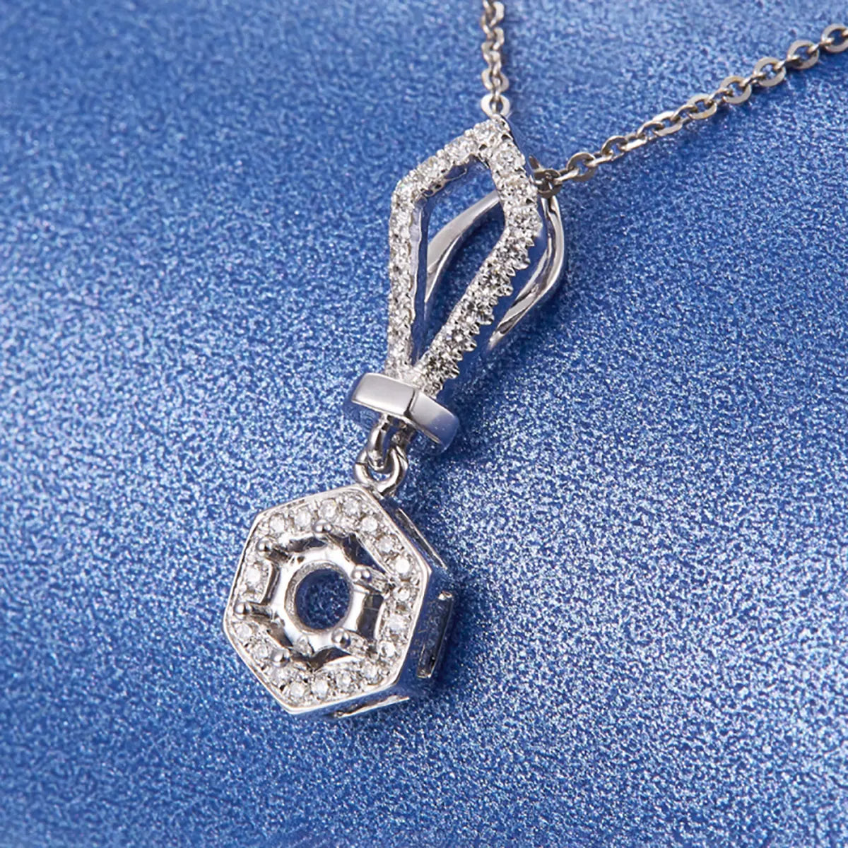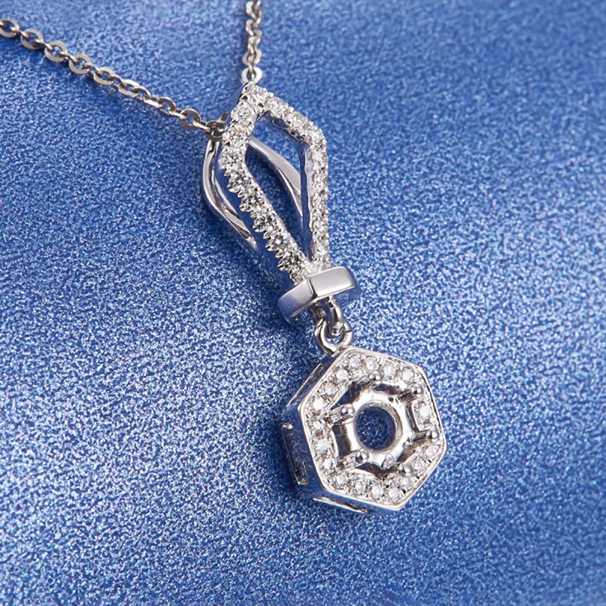 Pavé Hexagon Shape Halo Style Diamond Pendant Setting