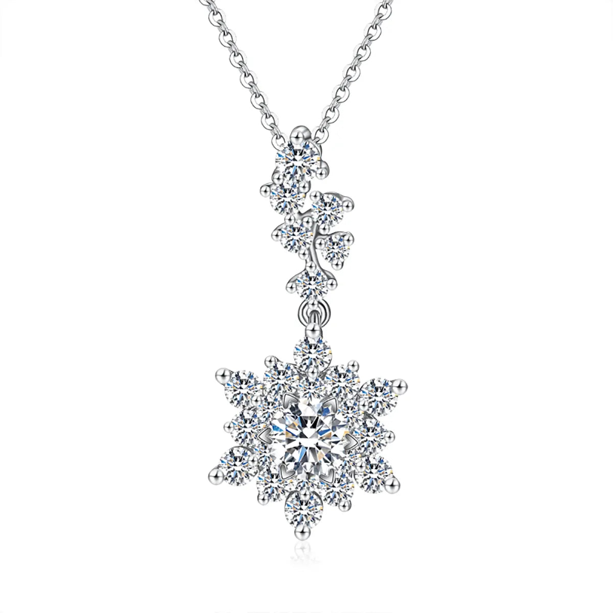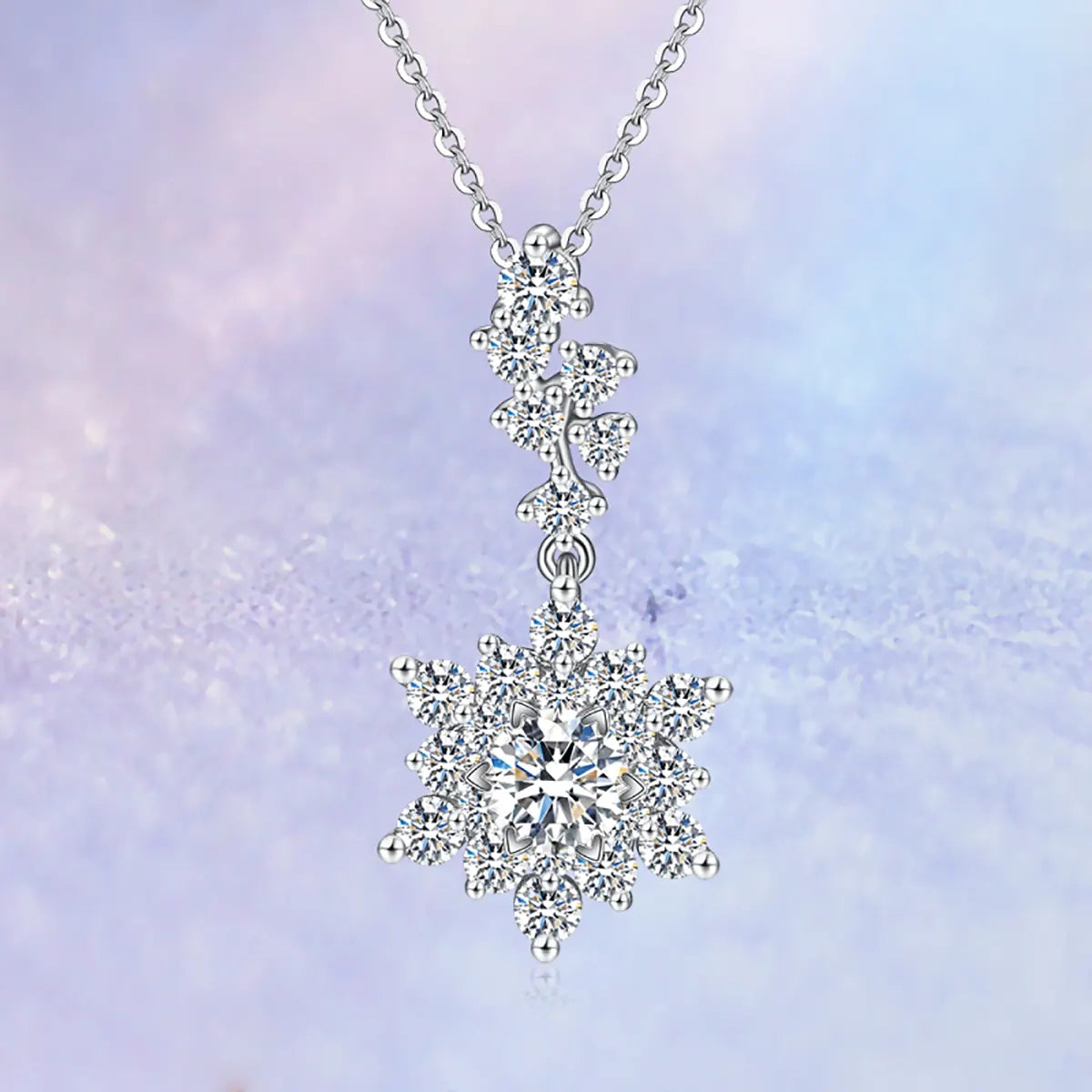Pavé Snowflake Shape Halo Style Diamond Pendant Setting. Pendant setting only, center stone not included.