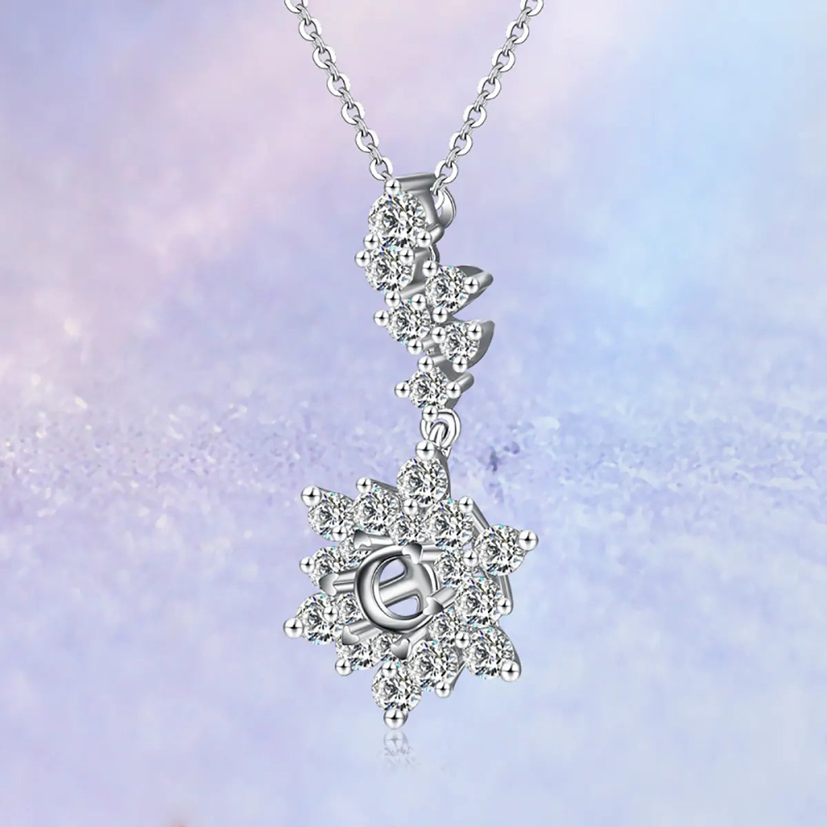 Pavé Snowflake Shape Halo Style Diamond Pendant Setting