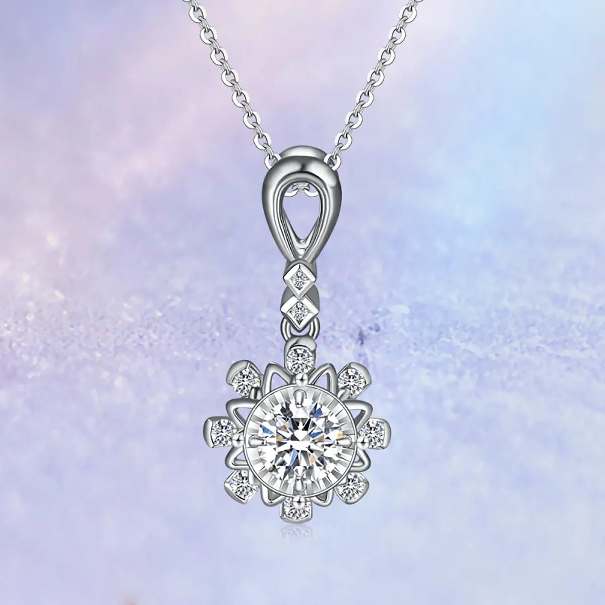 Snowflake Halo Bezel Set Diamond Pendant Setting. Pendant setting only, center stone not included.