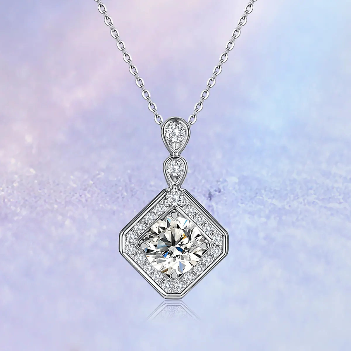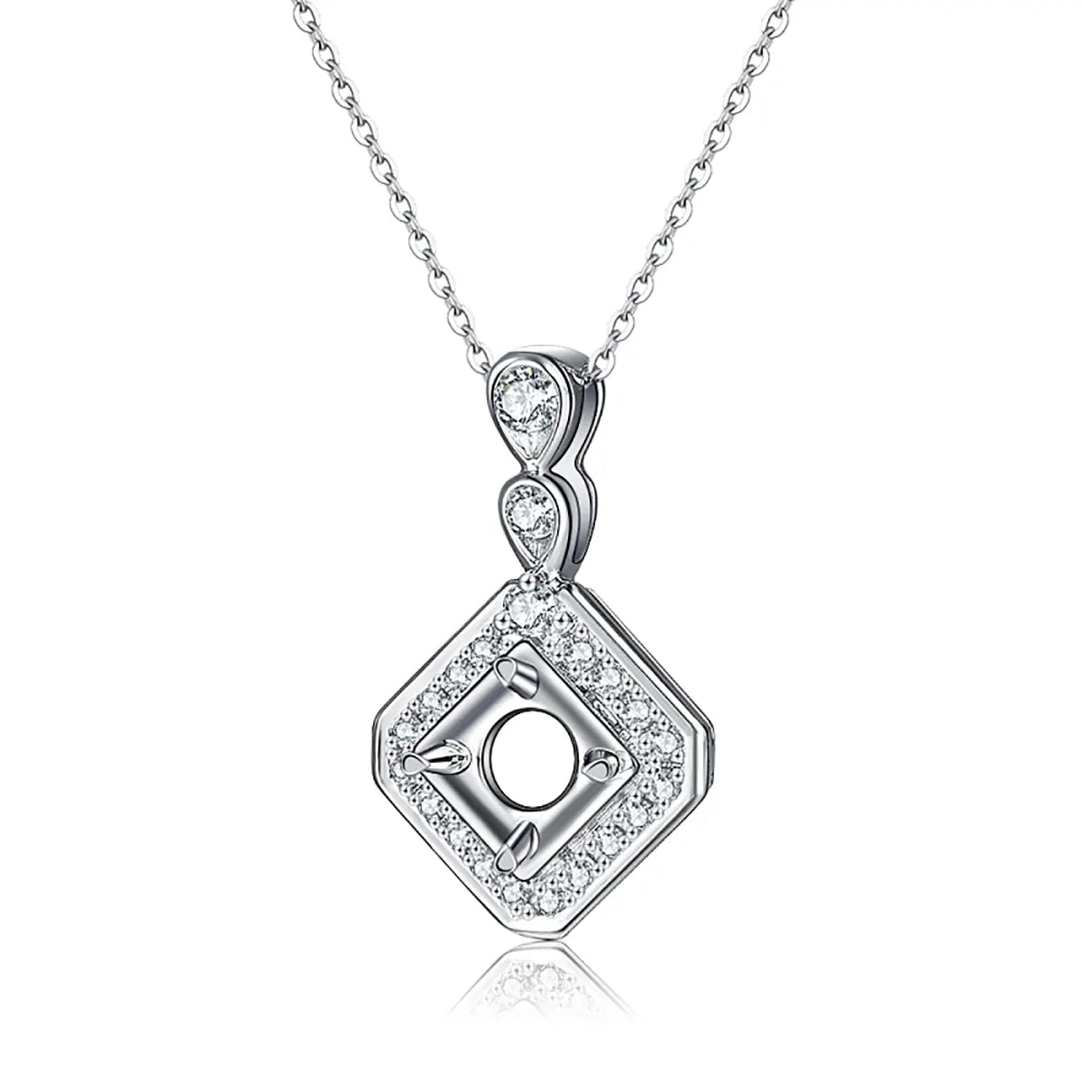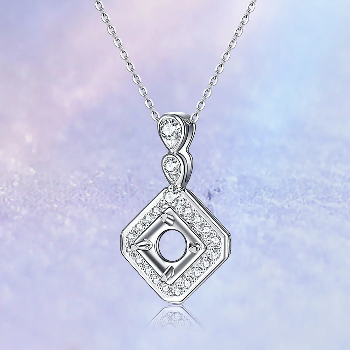 Square Shape Halo Style Diamond Pendant Setting. Pendant setting only, center stone not included.