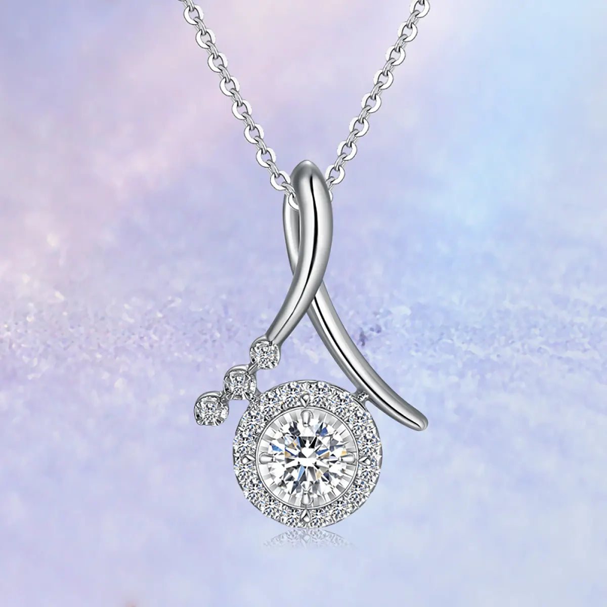Twist Style Floating Halo Diamond Pendant Setting. Pendant setting only, center stone not included.